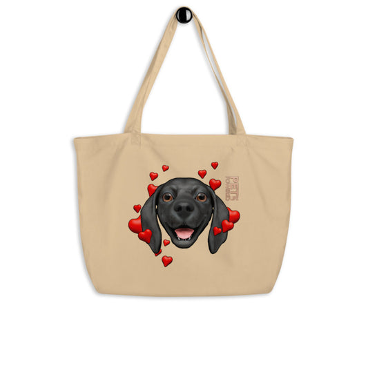 Happy Beagle Large Organic Tote, Black, Hearts