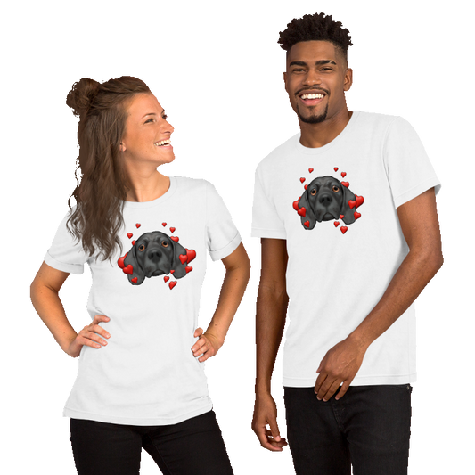 Sad Beagle Unisex t-shirt, Black, Hearts