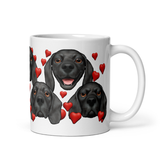 Glossy Beagle Mug, Black, Hearts