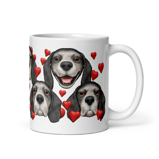 Happy Beagle Unisex t-shirt, Black with White mask, Hearts