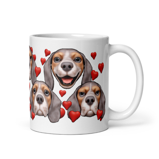 Glossy Beagle Mug, Blue, White and Tan with White stripe, Hearts