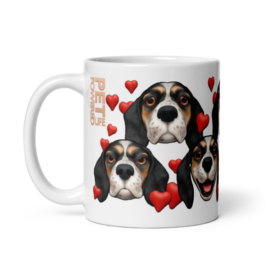 Glossy Beagle Mug, Bluetick with White stripe, Hearts