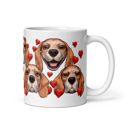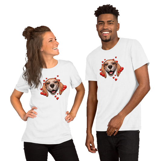 Happy Beagle Unisex t-shirt, Red with White mask, Hearts